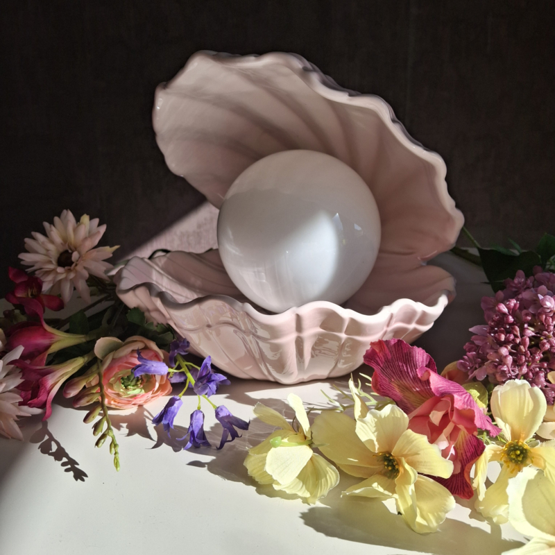 Vintage XL schelpenlamp roze